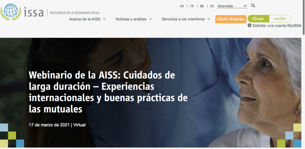 Organizado por AISS (Asociación Internacional de Seguridad Social, ISSA por sus siglas en inglés) con el apoyo de AIM (Asociación Internacional de la Mutualidad) el 17 de Marzo próximo a las 10 horas de Argentina tendrá lugar el Seminario “Atención a largo plazo: experiencias internacionales y buenas prácticas de sociedades de beneficio mutuo.” El encuentro contará con interpretación simultánea en inglés, francés y español.