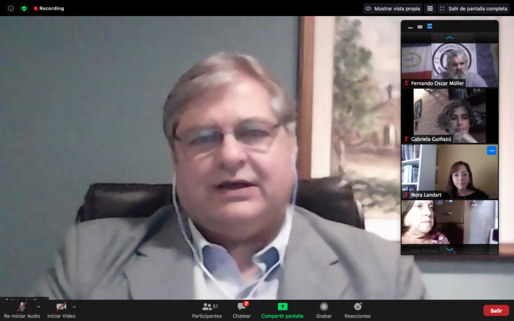 En su exposición el dirigente repasó las actividades que llevaron a cabo el Estado y el sector para enfrentar la pandemia, caracterizó el desarrollo alcanzado por el mutualismo en el plano internacional comparado con el local y abordó los retos que deparan a las entidades mutuales para continuar desarrollando y visibilizando un modelo, “a partir de valores y principios” y “con militancia, desde todos los territorios”.