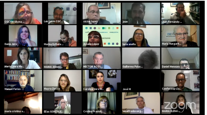 El encuentro contó con la intervención de profesionales expertos y expertas que desarrollan sus actividades al interior de la Economía Social y Solidaria, de Colombia, Chile, Brasil, Uruguay, Canadá, Costa Rica, Panamá y Argentina.