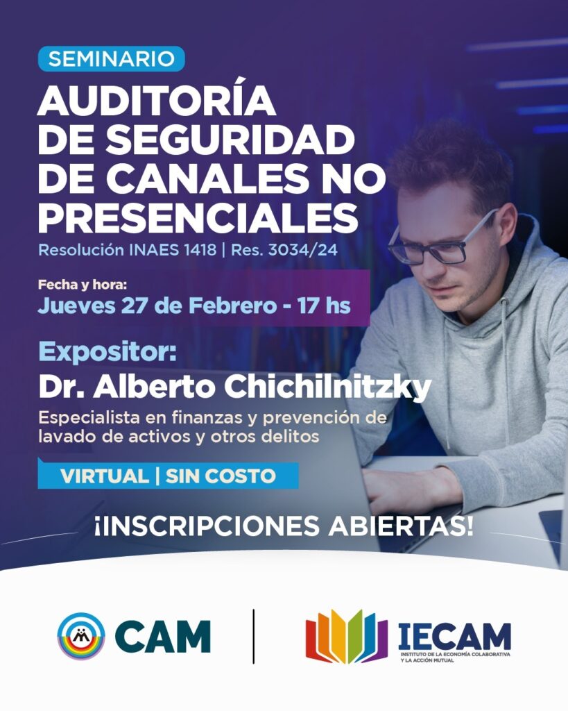 INSCRIPCIONES ABIERTAS: “SEMINARIO SOBRE AUDITORIA DE SEGURIDAD DE CANALES NO PRESENCIALES. Resolución INAES 1418 TO Resolución 3034/24”