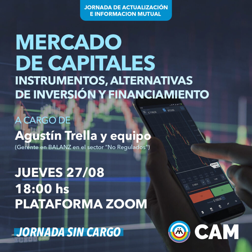 El jueves 27 de agosto se desarrolló la Jornada de Actualización e Información Mutual “Mercado de Capitales: Instrumentos, Alternativas de Inversión y Financiamiento”, en el marco de la Diplomatura en Administración Financiera de Mutuales que impulsa la Confederación Argentina de Mutualidades (CAM), junto a la Universidad Atlántida Argentina.