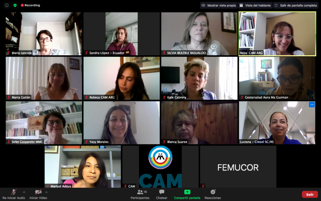Para despedir el encuentro Nora Landart, Coordinadora de las Comisiones Territoriales de Equidad de Género de CAM, invitó a cada una de las asistentes a enviar un mensaje de solidaridad y un saludo de esperanza para las mujeres afectadas por la Pandemia, especialmente en Brasil, donde la cifra de muertes supera las 240 mil.