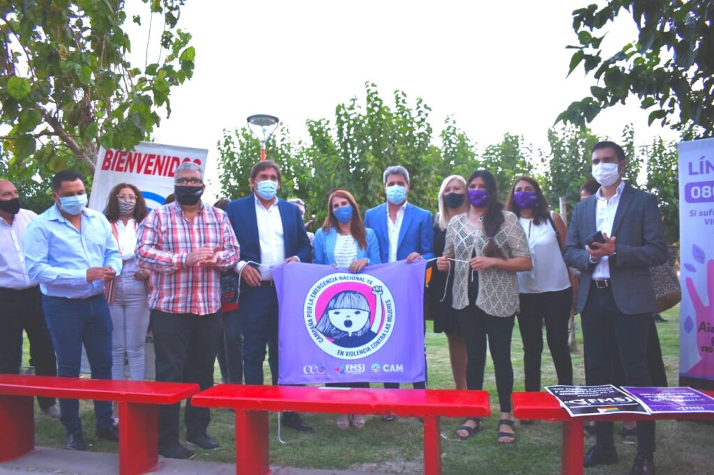 El martes 16 de marzo, en la localidad de Angaco, “se pintaron tres bancos de la plaza Madre María y se colocaron dos placas conmemorativas de las Comisiones de Equidad de Género de San Juan y Mendoza con las inscripciones: Somos las voces de las que ya no están y Vivas nos queremos”, detalló Daniela Albarez, coordinadora de la Comisión de Equidad de Género (CEG) de la Federación de Mutuales de San Juan (FMSJ) quien explicó que la iniciativa es parte de “un proyecto cultural y pacífico, de prevención, información y sensibilización contra la violencia de género y el feminicidio. Es una actividad social y comunitaria que se trabaja en forma colectiva”.